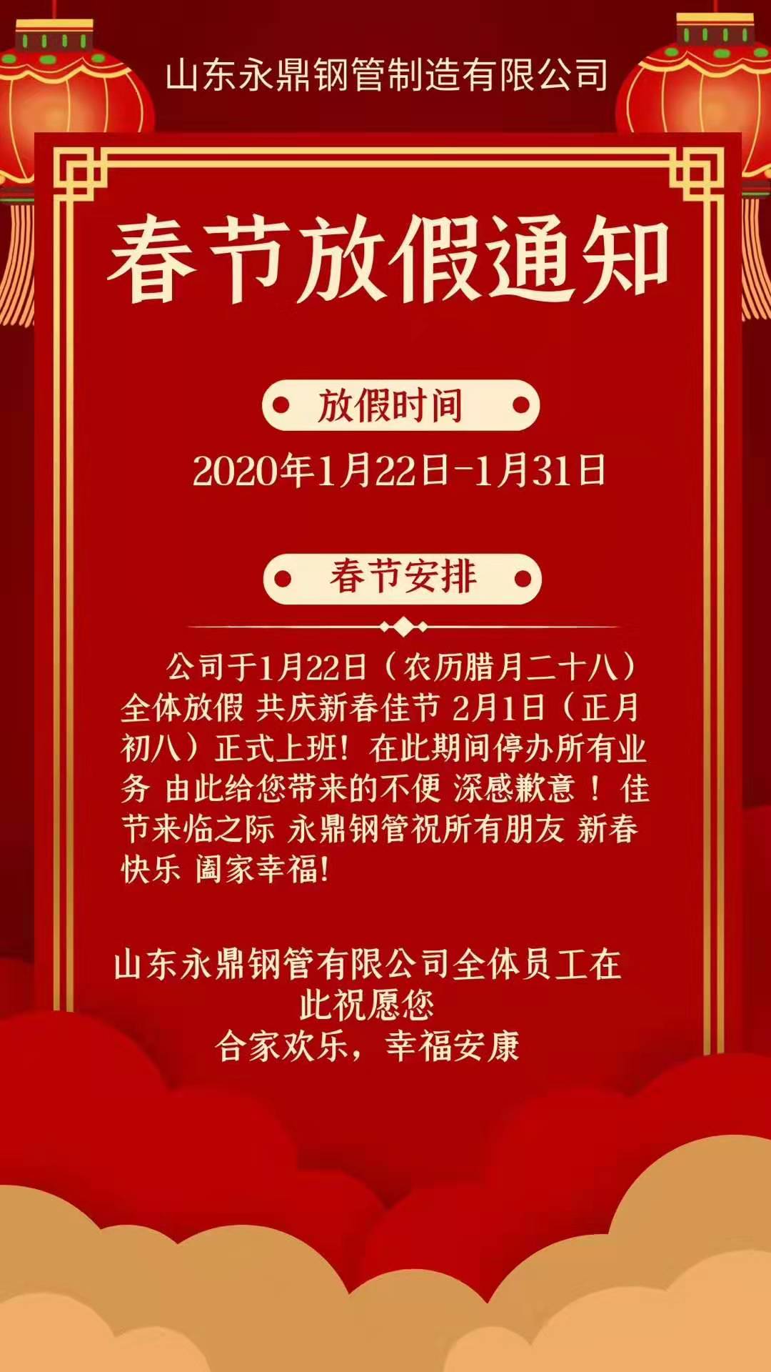 山東昌衡信德鋼管2020年春節(jié)放假通知